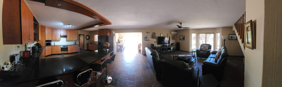 Upstairs entertainment area with BAR, patio, lounge, BATHROOM & sleeper couch